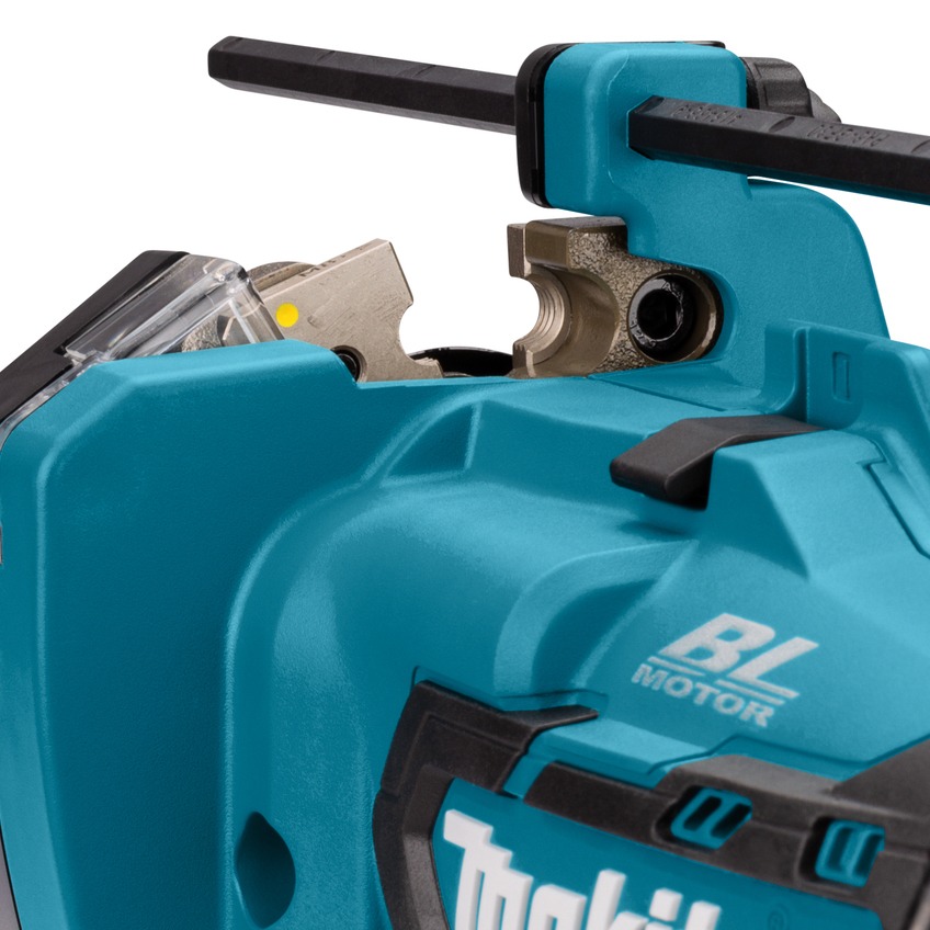Різак Makita SC103DZ оснащений безщітковим двигуном, який забезпечує високу ефективність та довгий ресурс роботи. Компактна конструкція та невелика вага роблять інструмент зручним для роботи навіть у важкодоступних місцях або під час монтажу над головою.