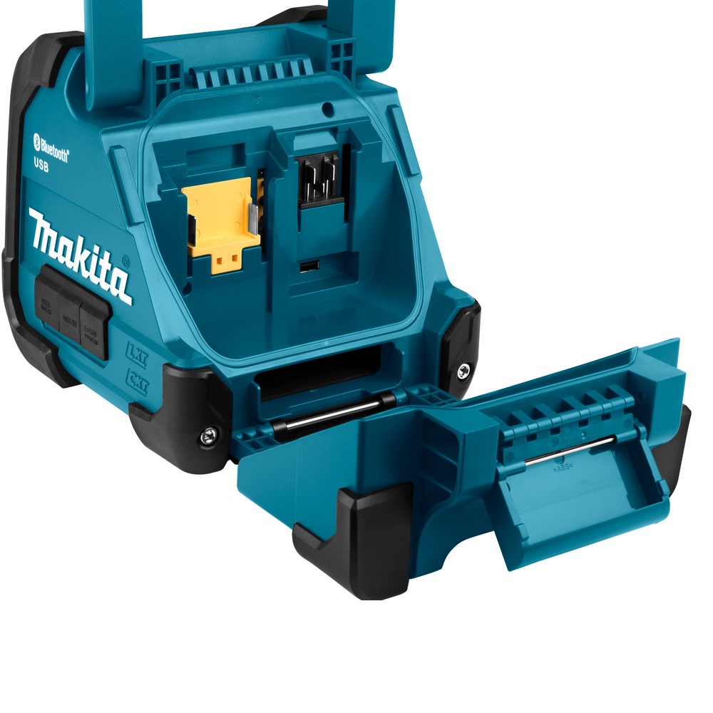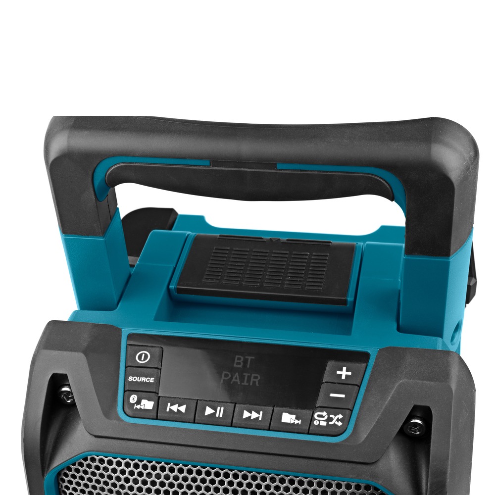 Makita DMR203 — це універсальна акумуляторна Bluetooth колонка, створена для якісного відтворення музики в будь-яких умовах. Вона підтримує роботу від акумуляторів серій LXT та CXT, а також від стандартної мережі 220В, що забезпечує максимальну гнучкість використання як у приміщенні, так і на відкритому повітрі.