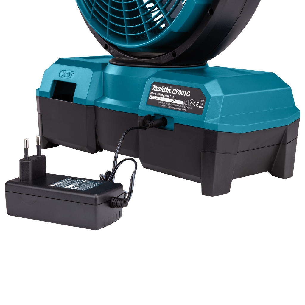 Пристрій працює від акумуляторів XGT 40В Max (36 В), що забезпечує повну автономність. Це дозволяє використовувати вентилятор у місцях без доступу до електромережі. Використання акумуляторів платформи Makita гарантує тривалу роботу та сумісність з іншими інструментами серії XGT.